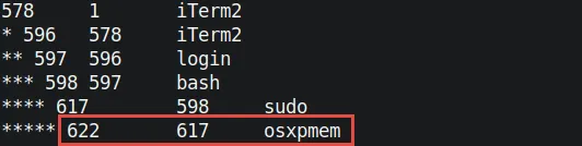 정답 : 도구=osxpmem, PID=622, PPID=617