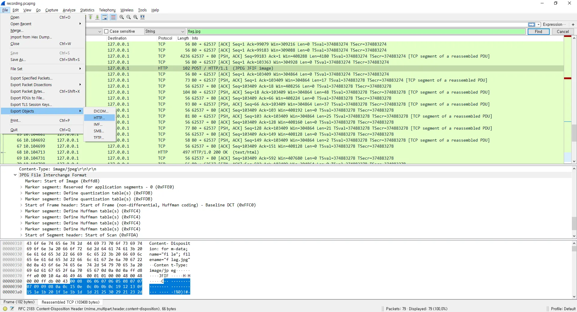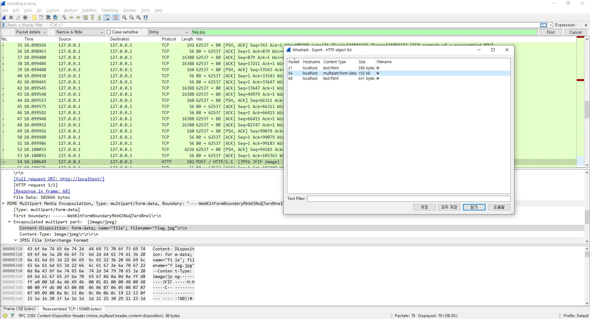 flag.jpg를 업로드한 패킷인 54번째 패킷을 저장한다.